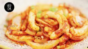腌制好的鱿鱼,接下来就是烹饪环节了。街头鱿鱼的烹饪方法主要是油炸,这样可以让鱿鱼变得金黄酥脆,口感更加诱人。